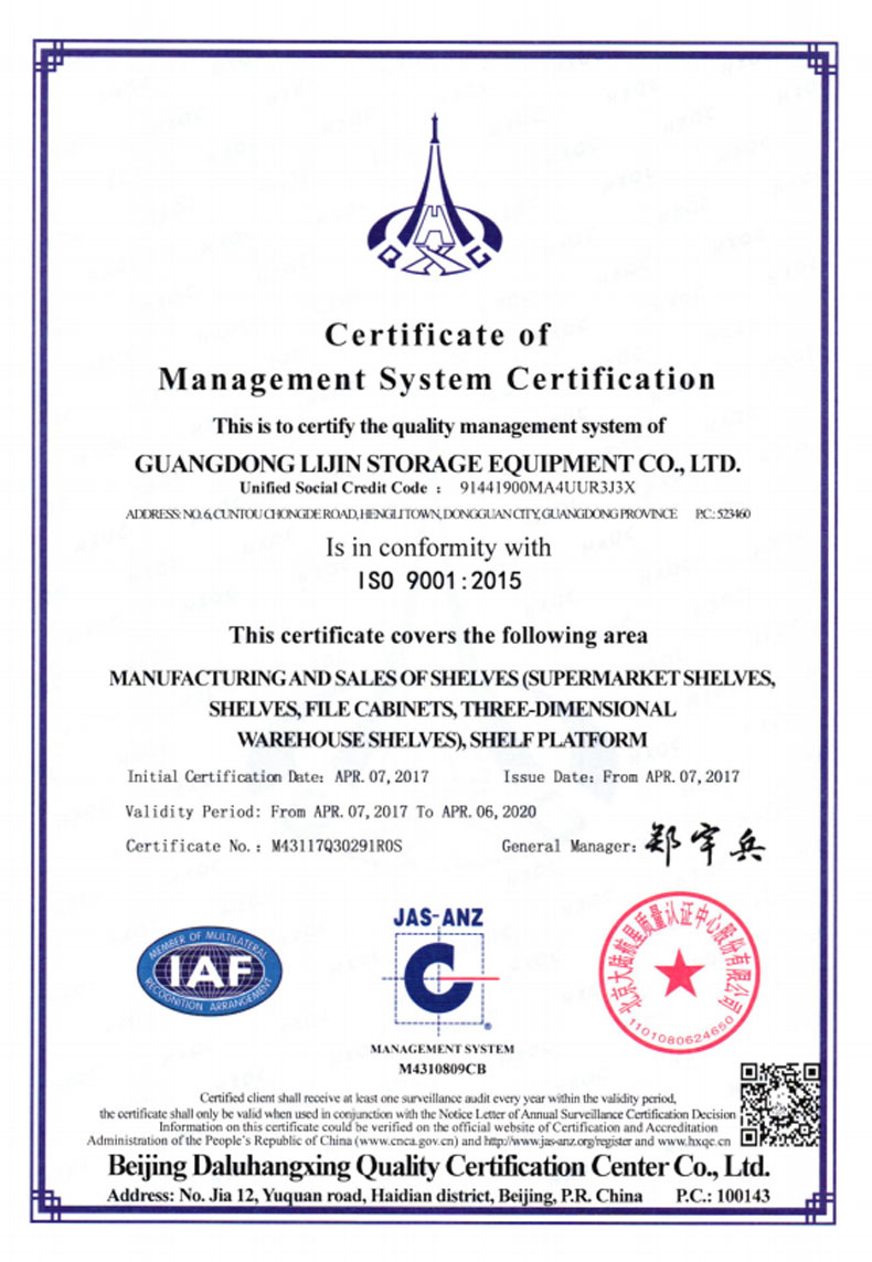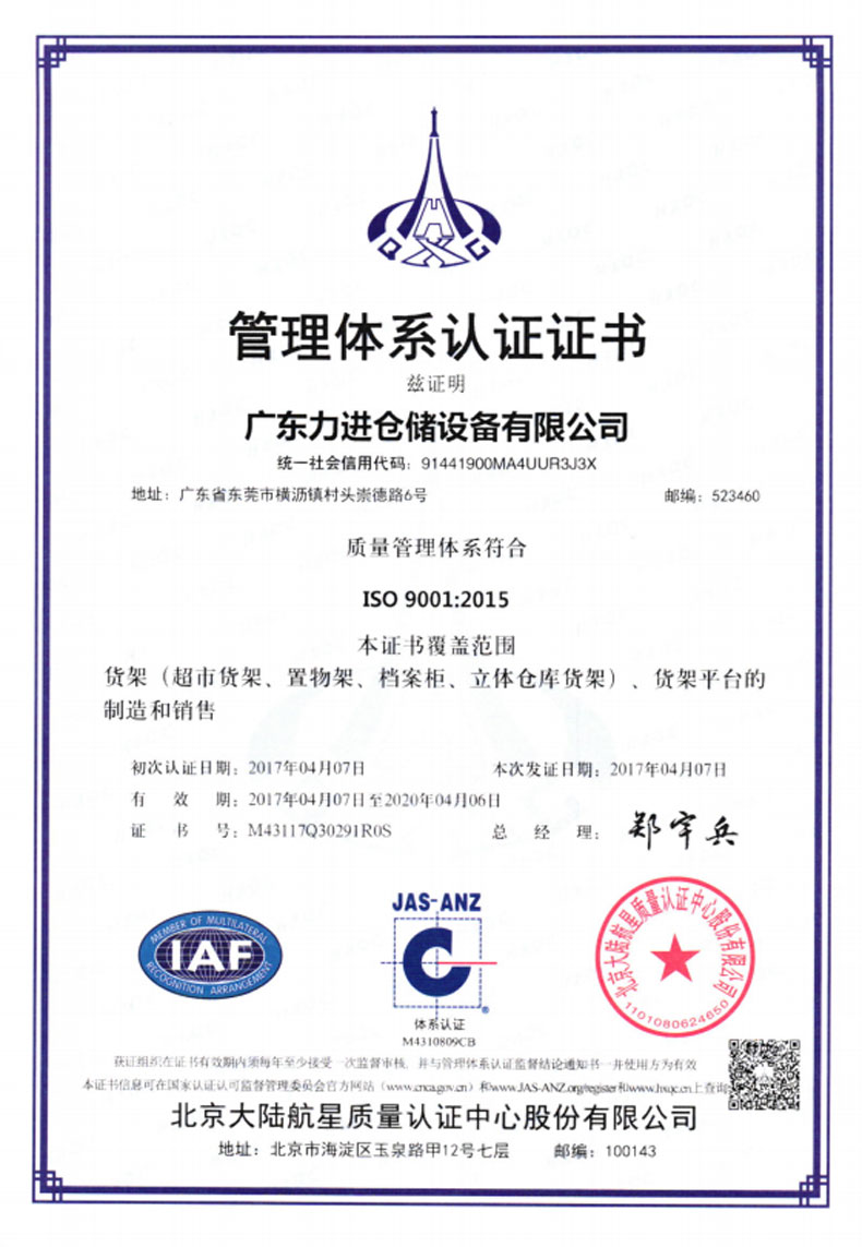 ?2016年5月    更名為廣東力進(jìn)倉(cāng)儲(chǔ)設(shè)備有限規(guī)公司,搬遷至東莞市橫瀝鎮(zhèn)村頭工業(yè)區(qū),占地面積12800平方米。